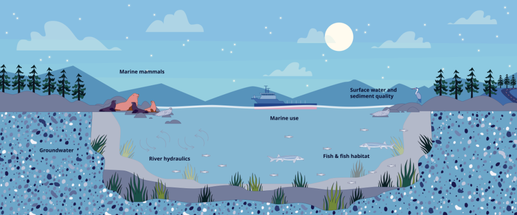 In-river work could potentially affect marine access and area use. Marine use also includes commercial transportation; commercial, recreational and Indigenous fisheries; marine tourism and recreation; and other marine uses by First Nations.