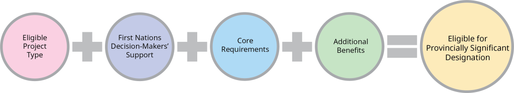 In addition to meeting at least one of the project types listed above, it is proposed that a project must meet all 3 core requirements to be considered Provincially Significant.